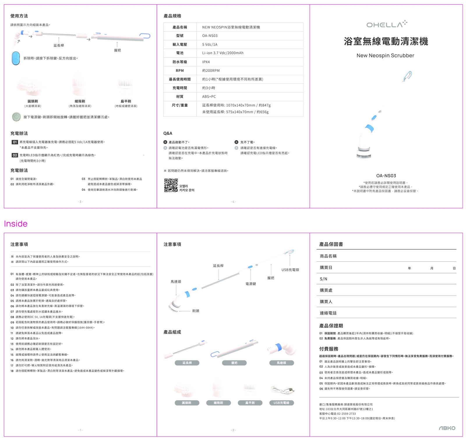 【韓國OHELLA】NEW NEOSPIN 二代_無線浴室清掃機(OA-NS03)