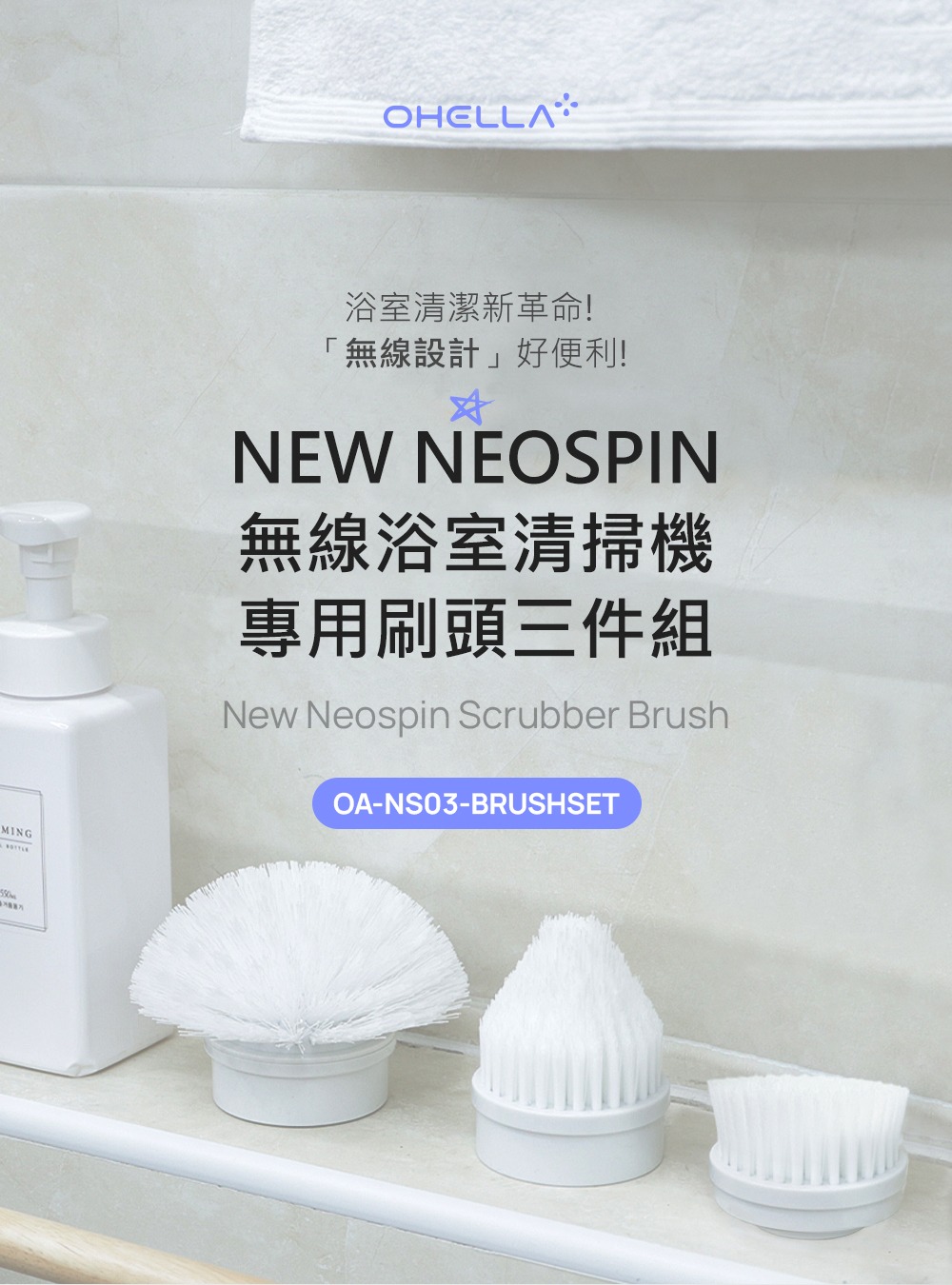 【韓國OHELLA】NEW NEOSPIN 二代_無線浴室清掃機 專用刷頭三件組(縫隙刷頭+圓形刷頭+扁平刷頭)(OA-NS03-BRUSHSET)