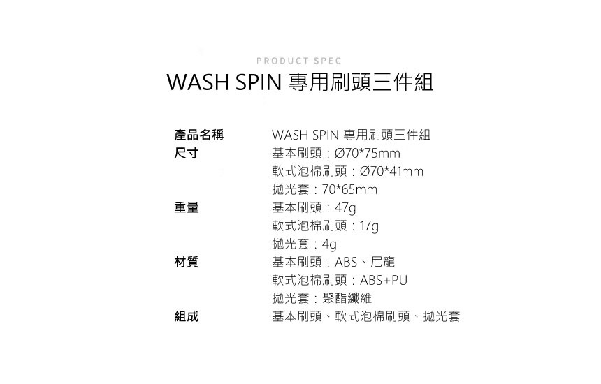 【韓國OA】VOAR WASH SPIN 專用刷頭三件組(基本刷頭+軟式泡棉刷頭+拋光套)