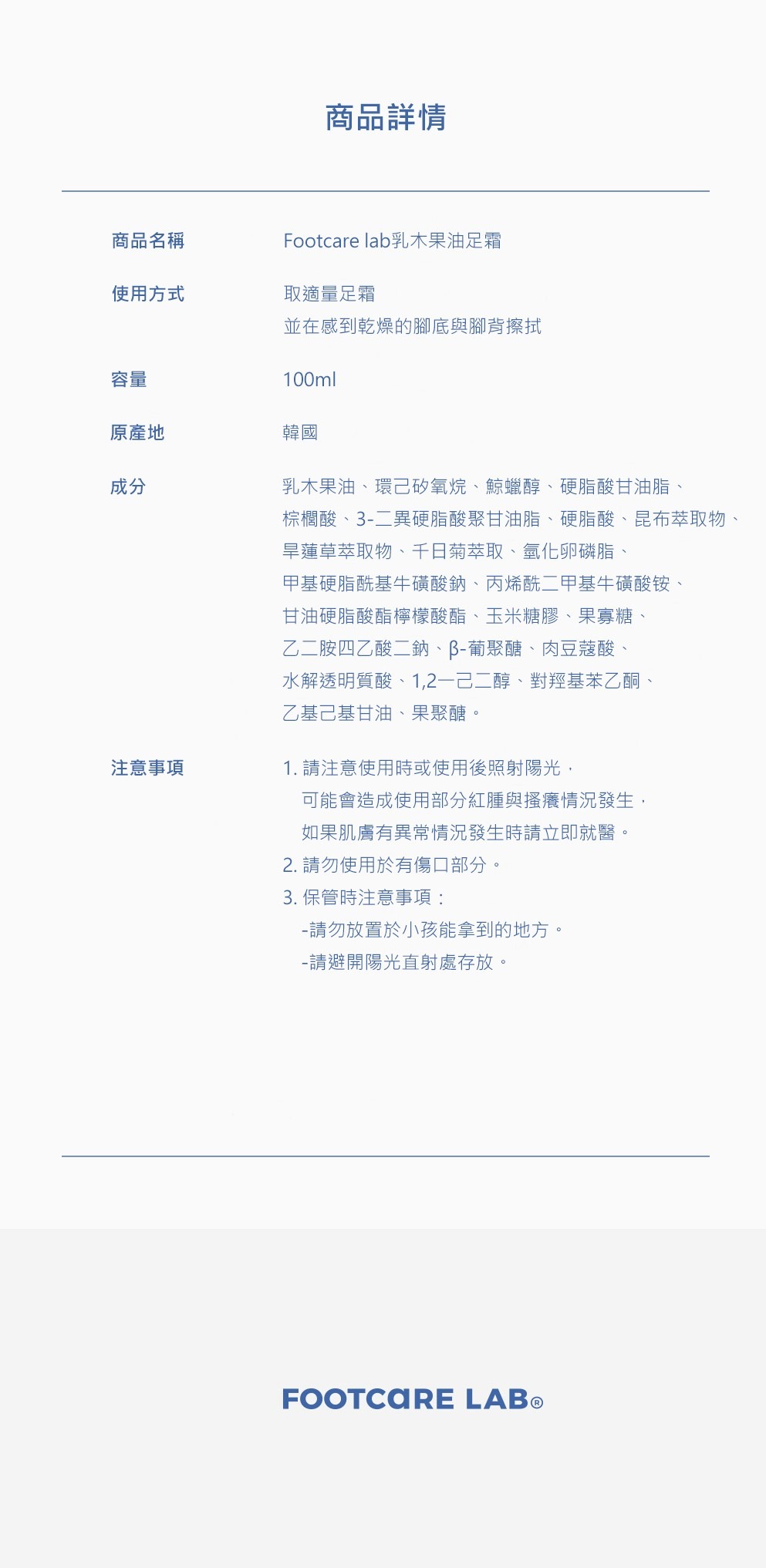 【韓國FOOTCARE LAB】高保濕乳木果油嫩足霜100ml