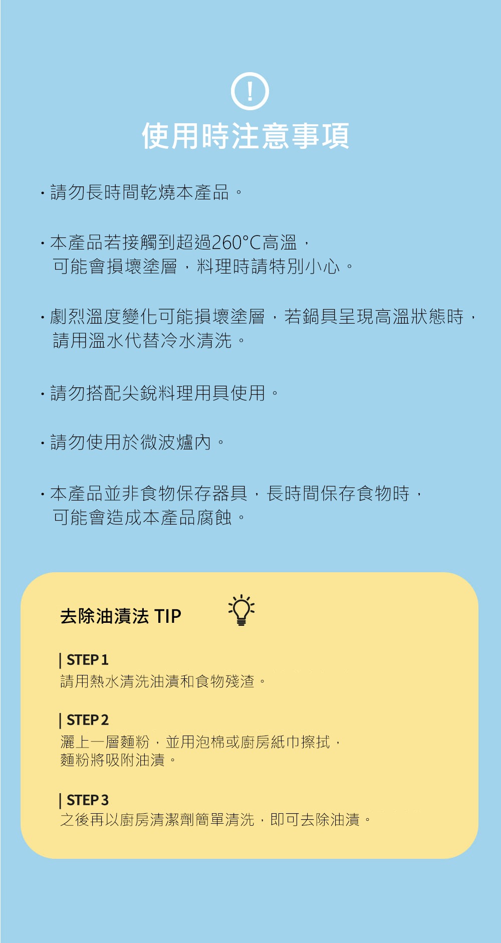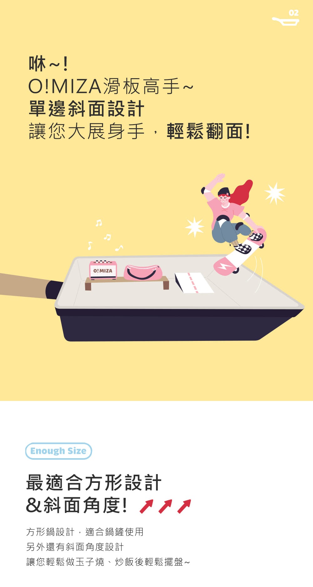 單邊斜面設計,食材翻面、鏟起盛盤都方便。