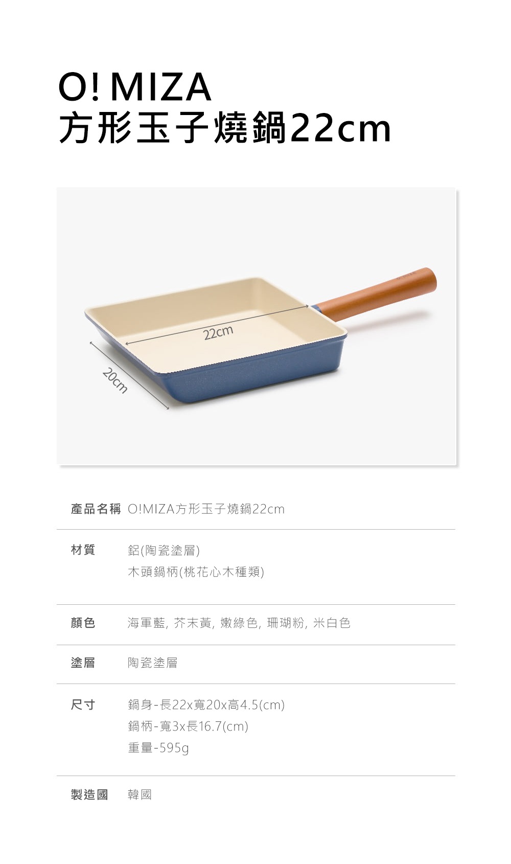 【韓國Dr.HOWS】O!MIZA 方形玉子燒鍋(22cm)-嫩綠色