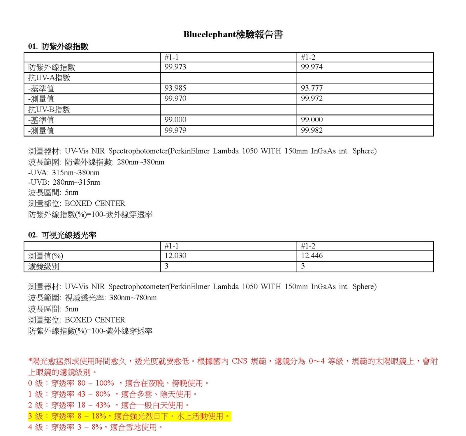 - 通過台灣抗UV400檢驗認證,可濾除99%UVA/UVB紫外線。