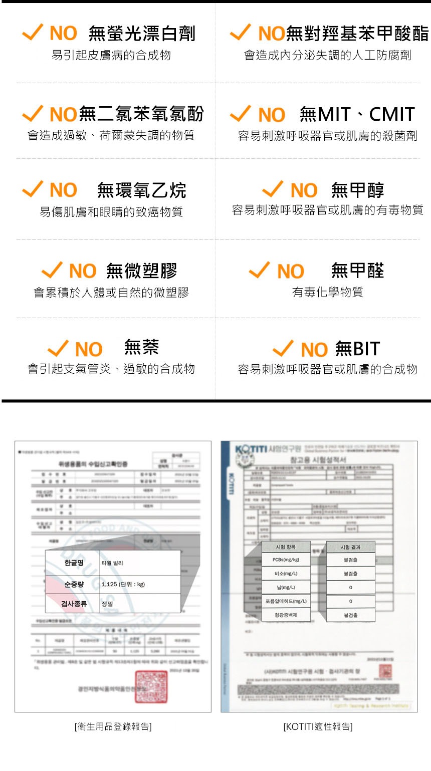 - 不含甲醛/螢光劑/微塑膠/萘/漂白劑等傷害物質