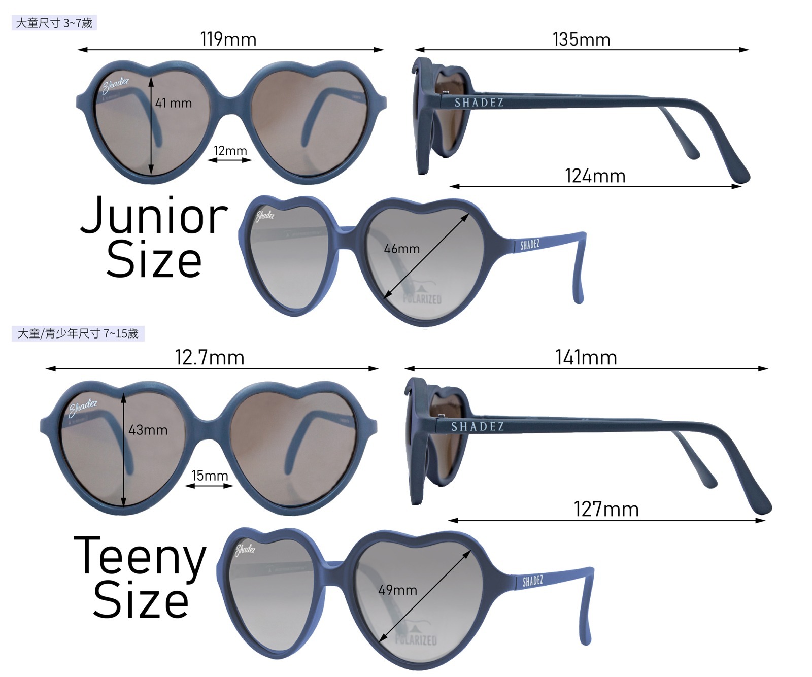 【瑞士SHADEZ】兒童太陽眼鏡〈頂級偏光款〉(年齡3-7)--SHZ410白框湛藍