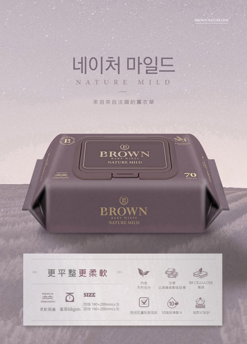 【韓國BROWN】NATURE MILD濕紙巾-薰衣草70抽(含蓋)