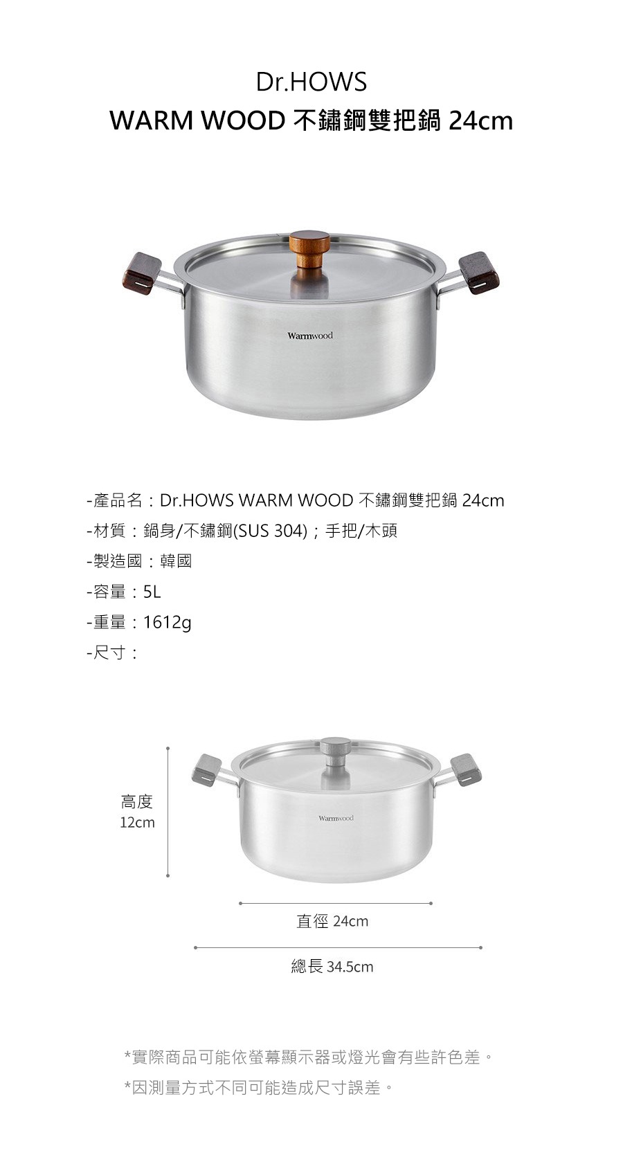 【韓國Dr.HOWS】WARM WOOD 不鏽鋼雙把鍋(24cm)