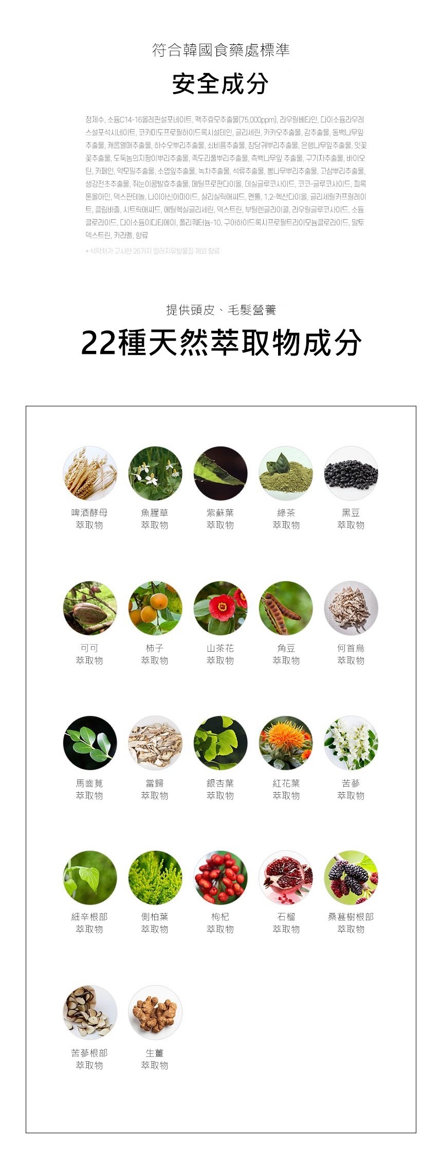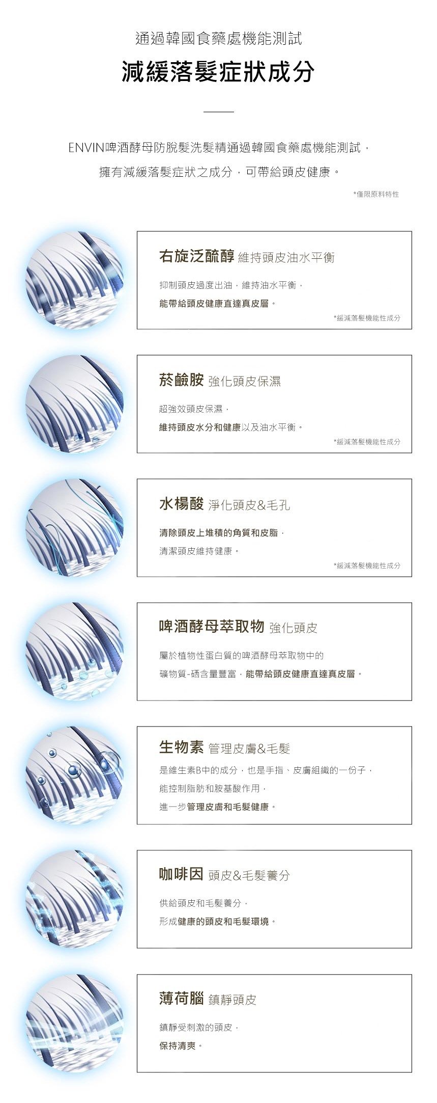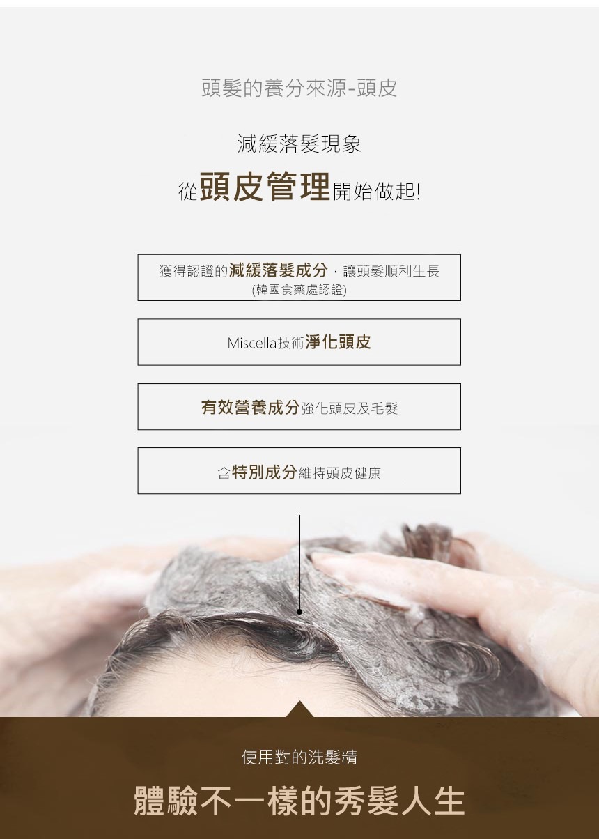 - 獲韓國食藥處認證,減緩落髮成分。