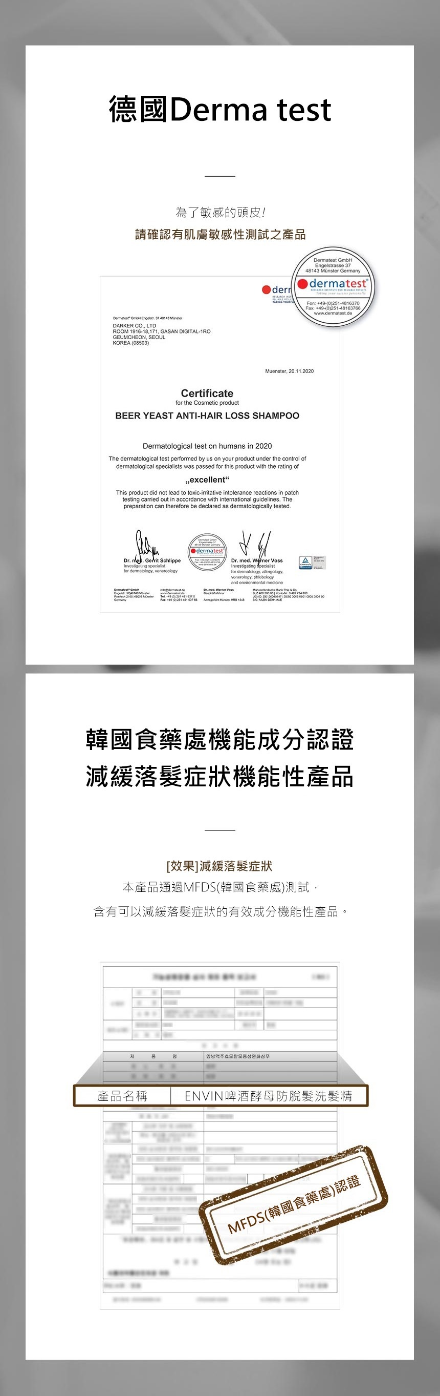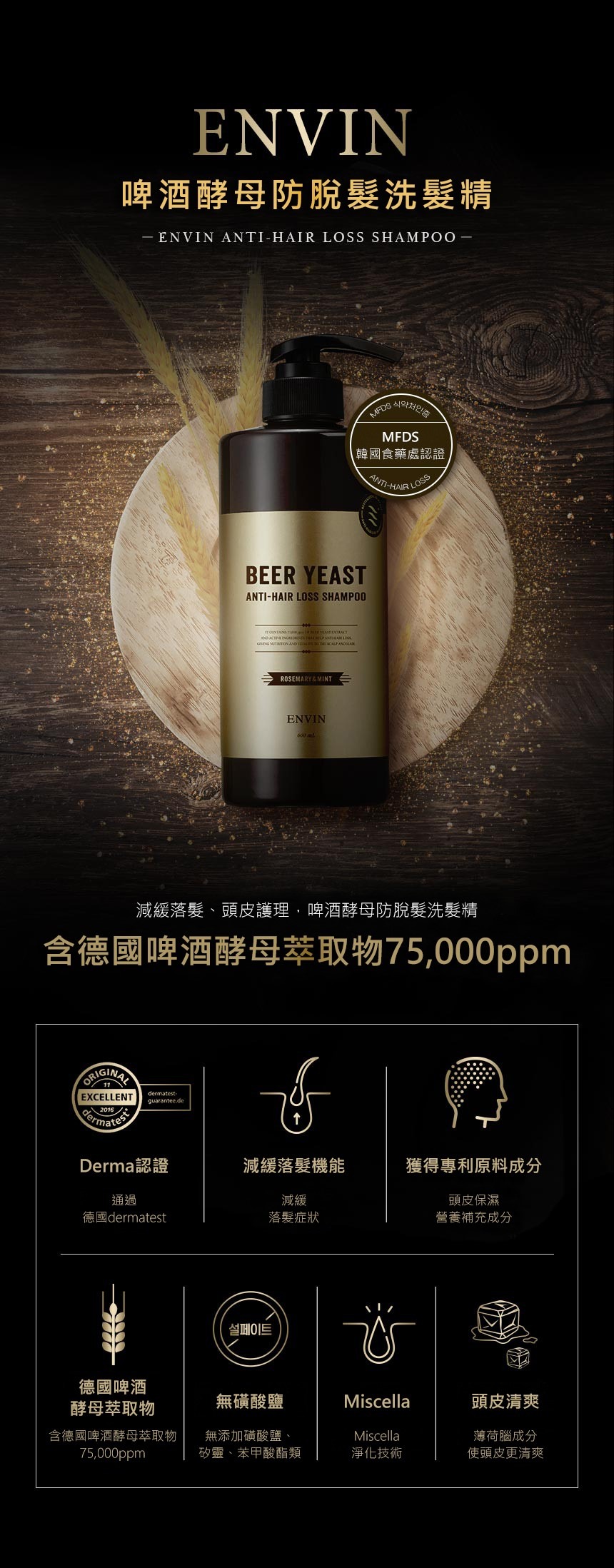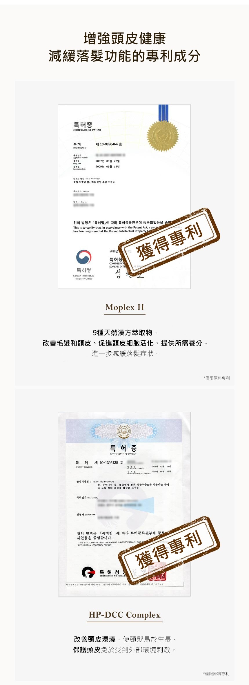 - 獲韓國食藥處認證,減緩落髮成分。