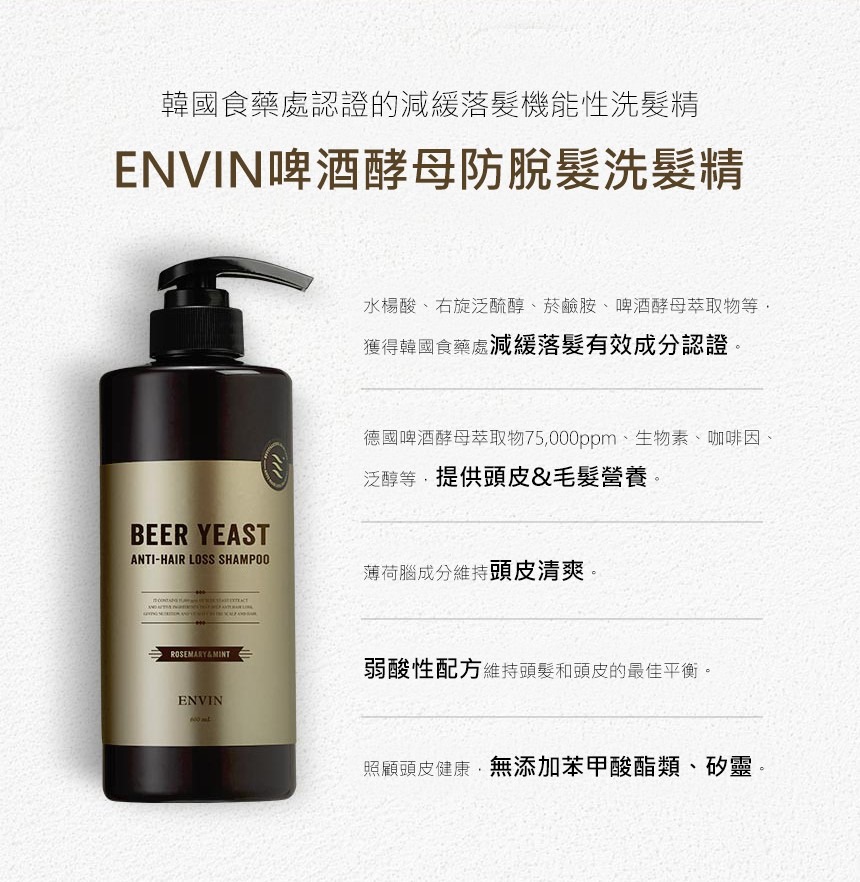 【韓國ENVIN】防脫髮洗髮精_啤酒酵母 (600ml)