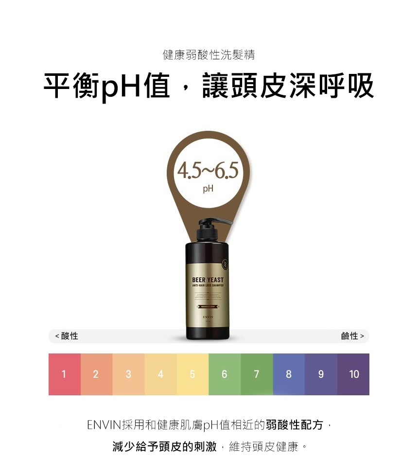 - 弱酸性配方,維持頭皮健康。