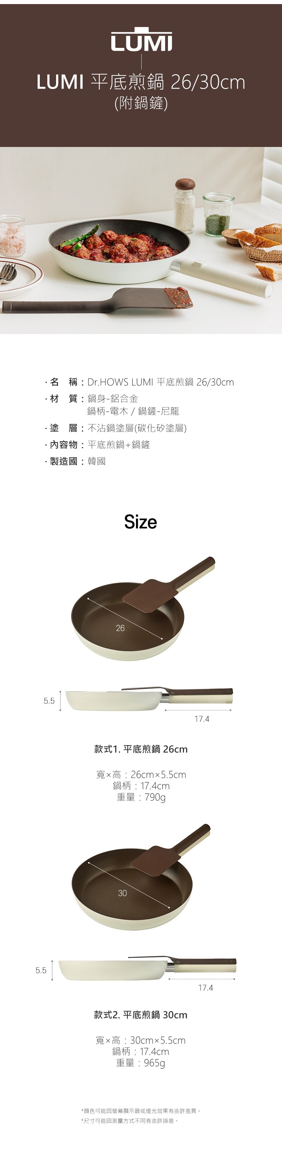 【韓國Dr.HOWS】LUMI 平底煎鍋(附鍋鏟/26cm)