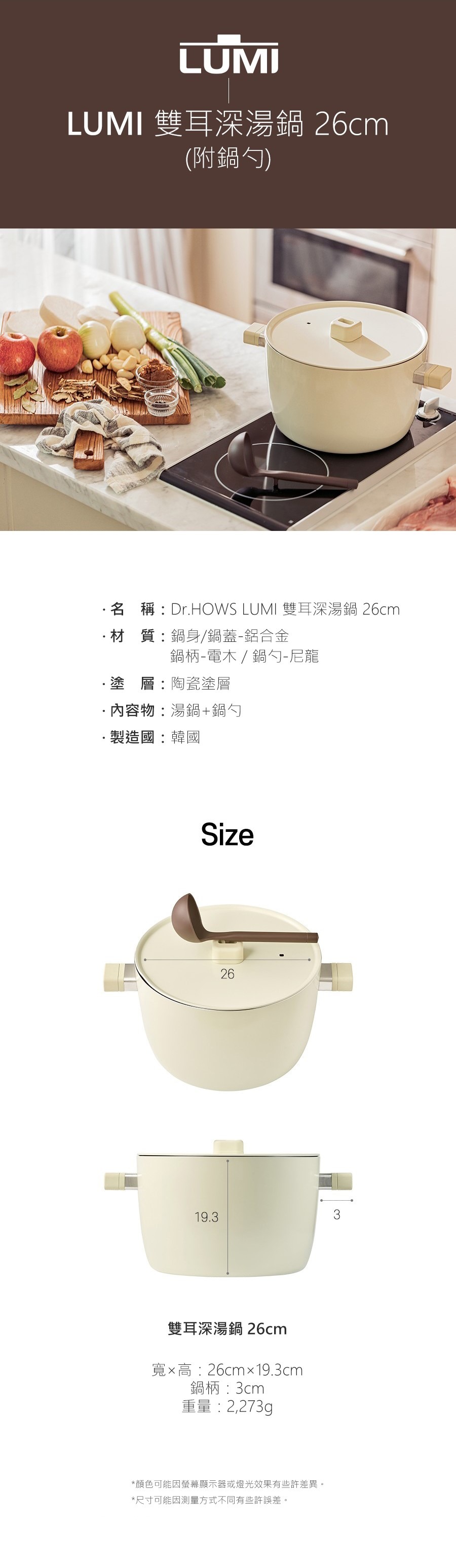 【韓國Dr.HOWS】LUMI 雙耳深湯鍋(附鍋勺/26cm)