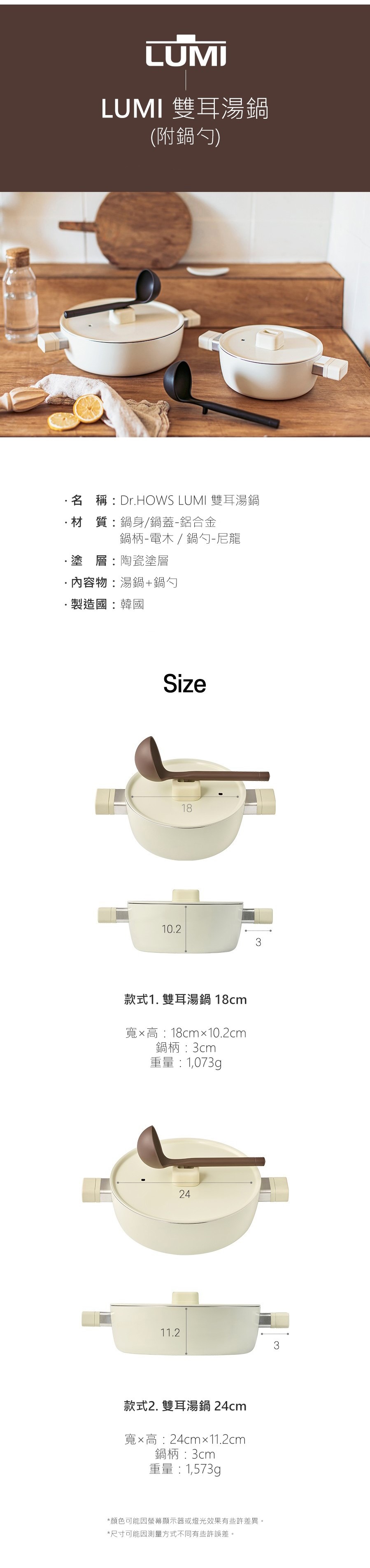 【韓國Dr.HOWS】LUMI 雙耳湯鍋(附鍋勺/24cm)