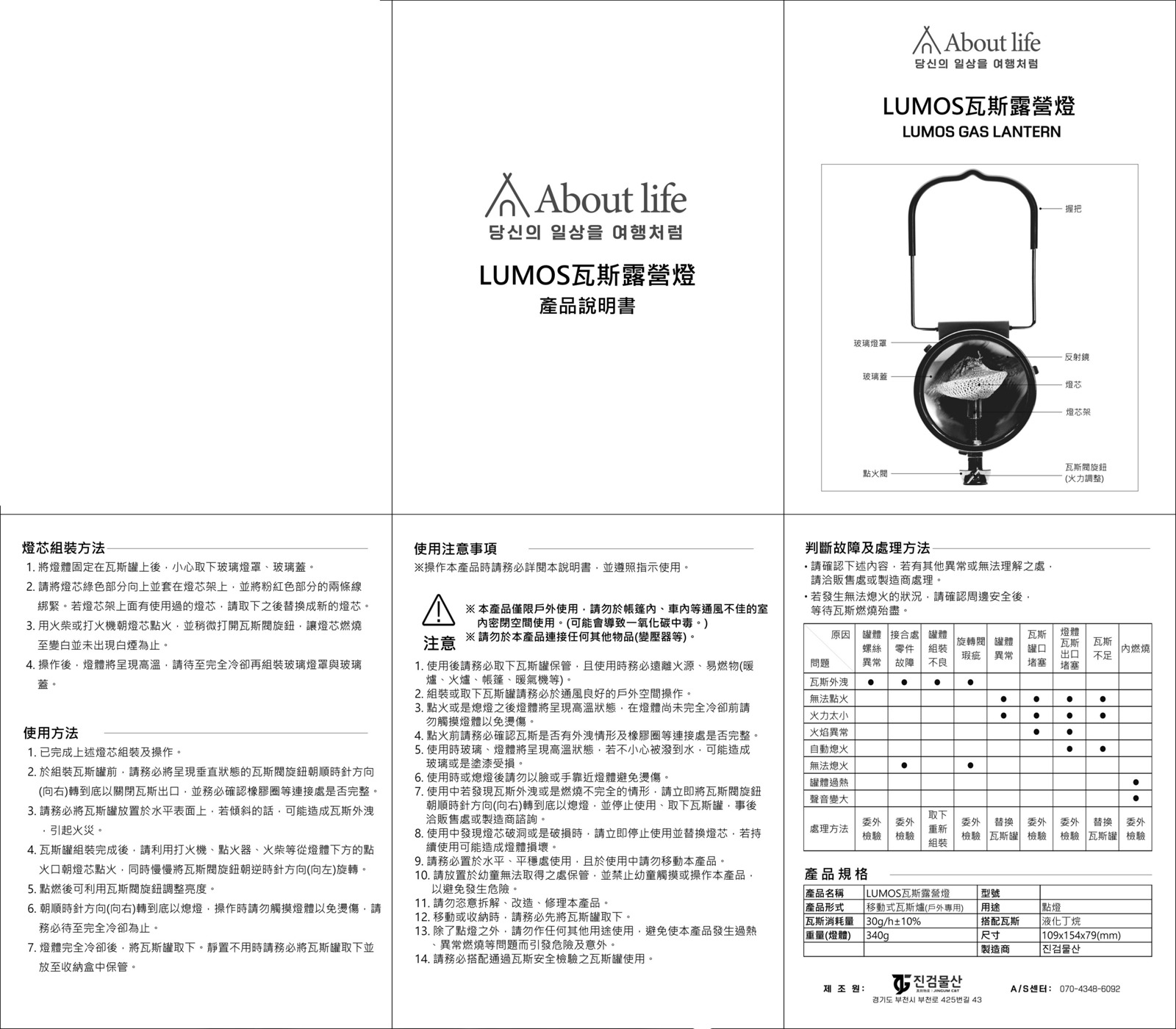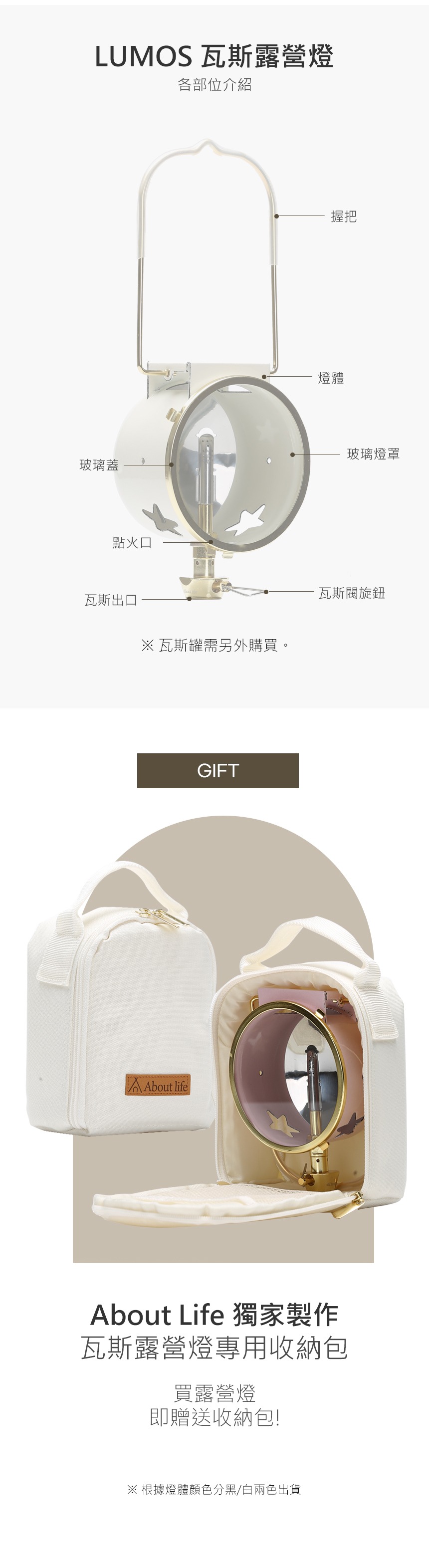 【韓國ABOUT LIFE】LUMOS瓦斯露營燈(含瓦斯罐罩)_霧面黑