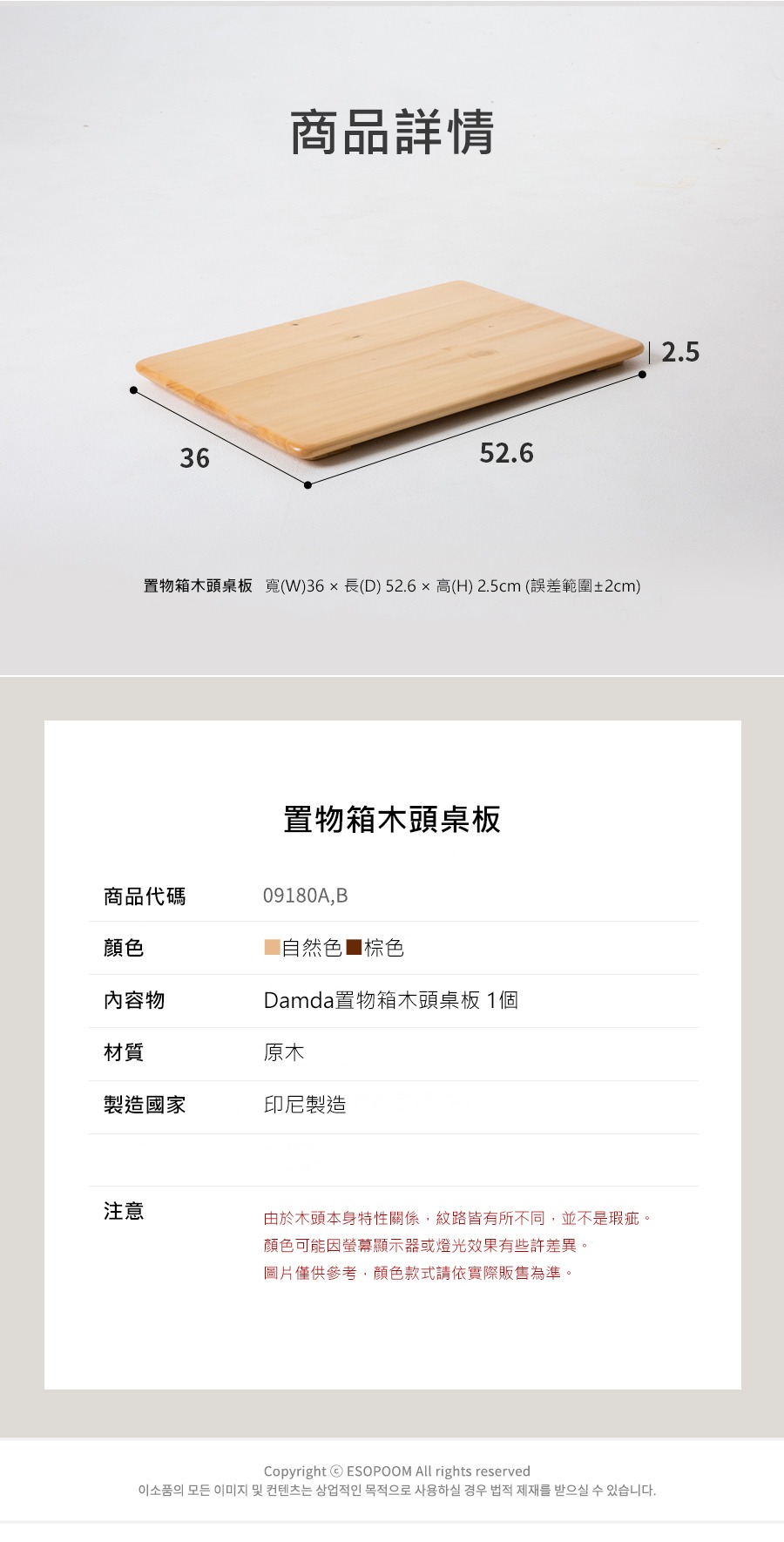 【韓國DAMDA】置物箱木頭桌板-自然色